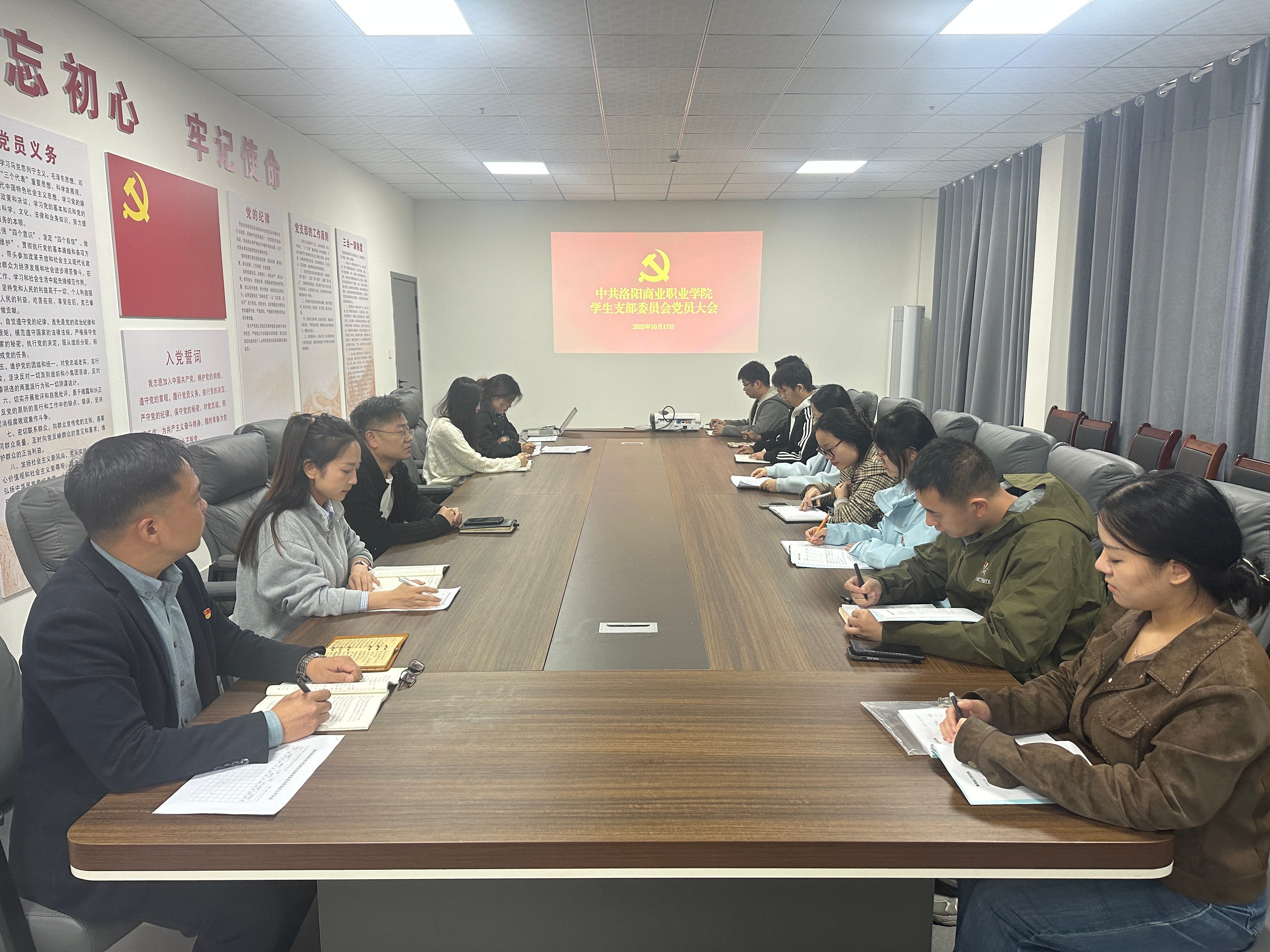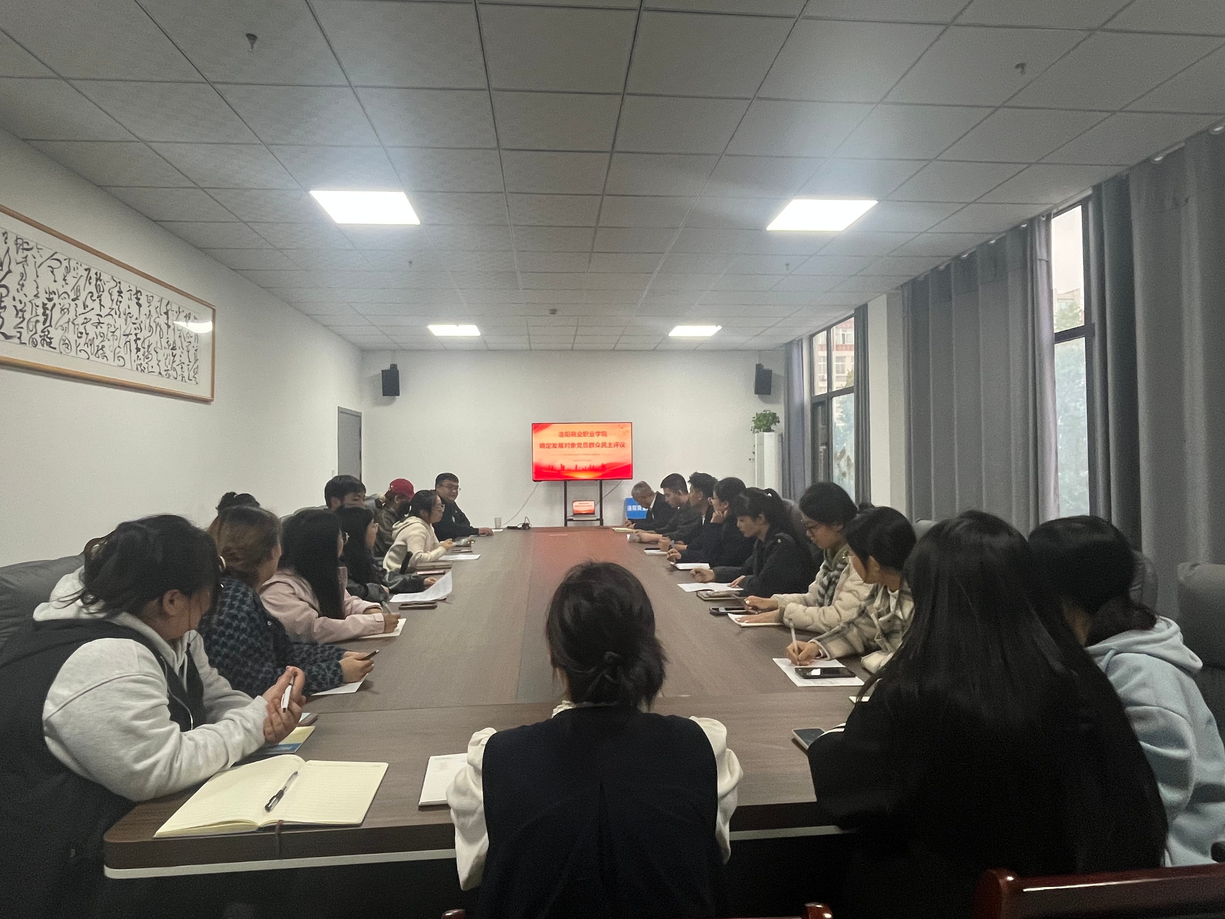 为严格履行发展党员程序,保证发展党员质量,筑牢党员队伍建设根基,10月17日,洛阳商业职业学院教师党支部、学生党支部分别于综合楼221、325会议室召开确定入党积极分子和发展对象人选的党员大会。会议分别由教师党支部支委委员韩易卓、学生党支部书记王蒙主持。