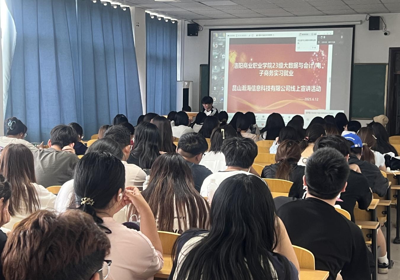 为深化产教融合,推动学生与职场的精准对接,6月12日,我校特邀昆山瀚海信息科技有限公司,面向23级大数据与会计、电子商务专业的844名学生及辅导老师,成功举办了一场线上实习就业宣讲会。