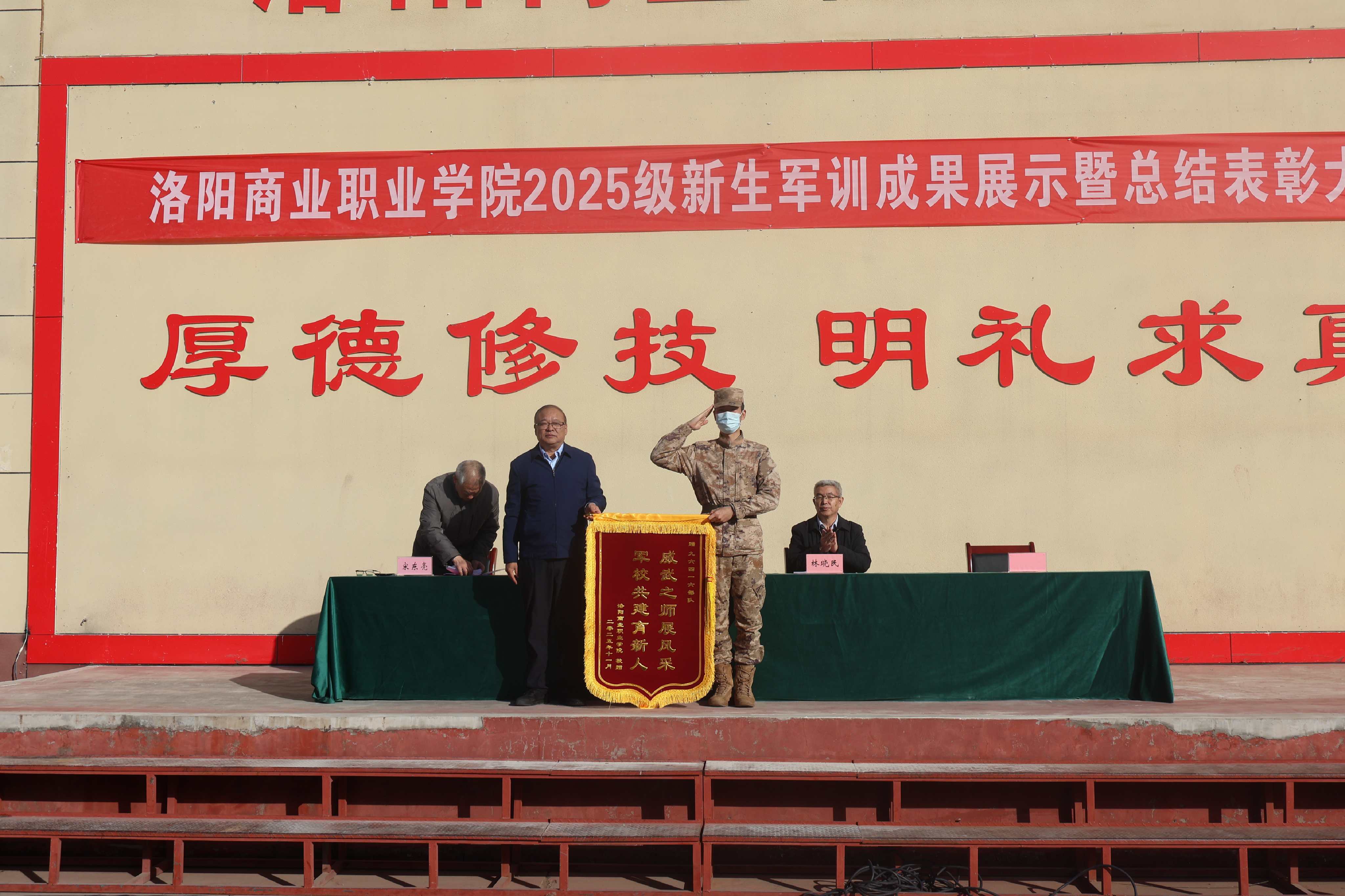 会上,陈立新宣读了《洛阳商业职业学院关于表彰2025年学生军训优秀标兵、优秀连队、优秀辅导员和优秀教官的决定》,校领导为89名优秀标兵、3个优秀连队、6名优秀辅导员和25名优秀教官颁发荣誉证书。