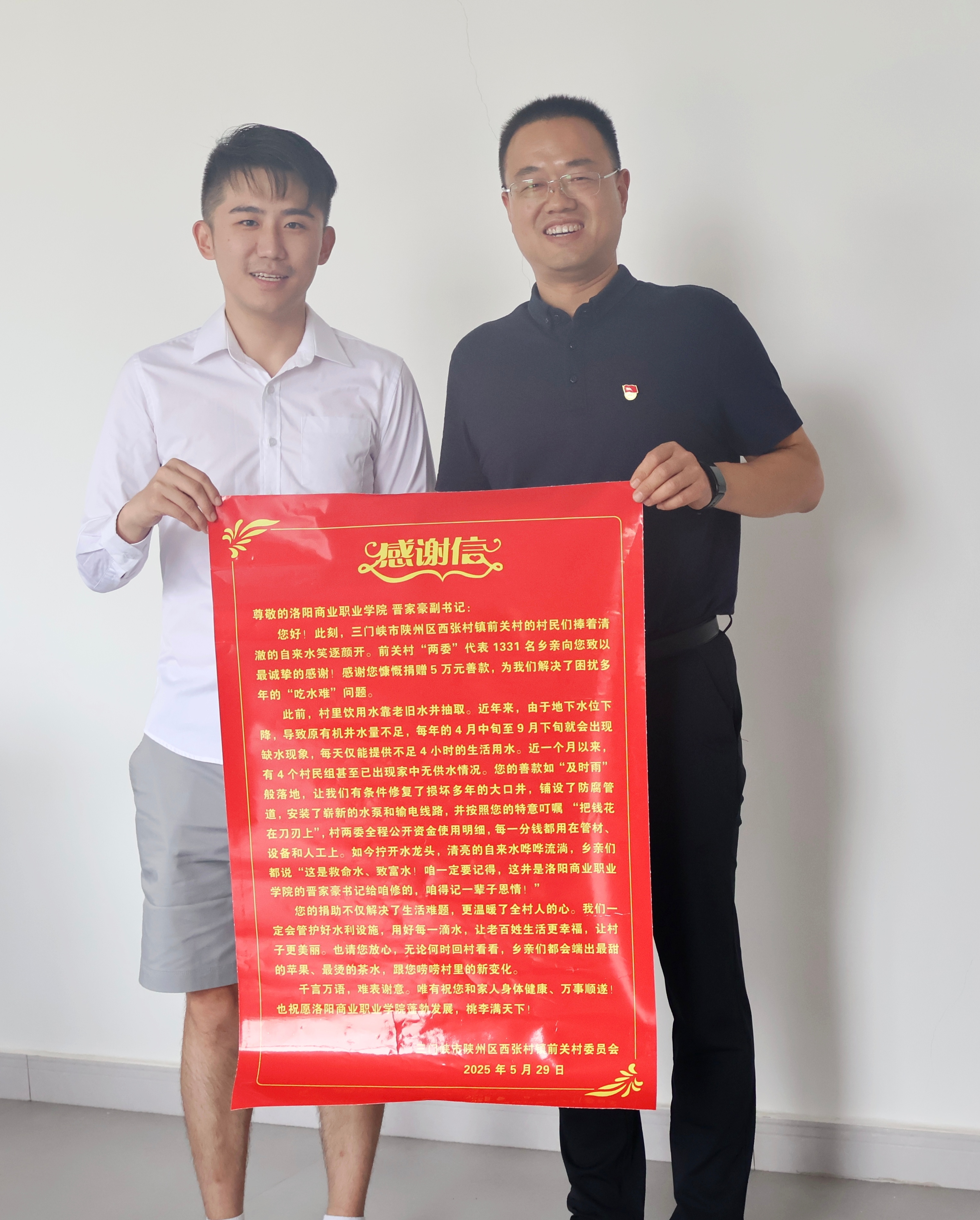 此次锦旗赠送活动,不仅是对晋家豪个人善举的高度肯定,更是我校践行社会责任、服务乡村振兴的生动缩影。未来,我校将在深化产教融合中培育德技并修的高素质人才,依托专业优势开展电商助农、技能培训等帮扶行动,同时鼓励师生投身乡村实践,以更多务实举措为乡村振兴注入力量。(撰稿/王兵鸽 编辑/侯静文 审核/李园园)