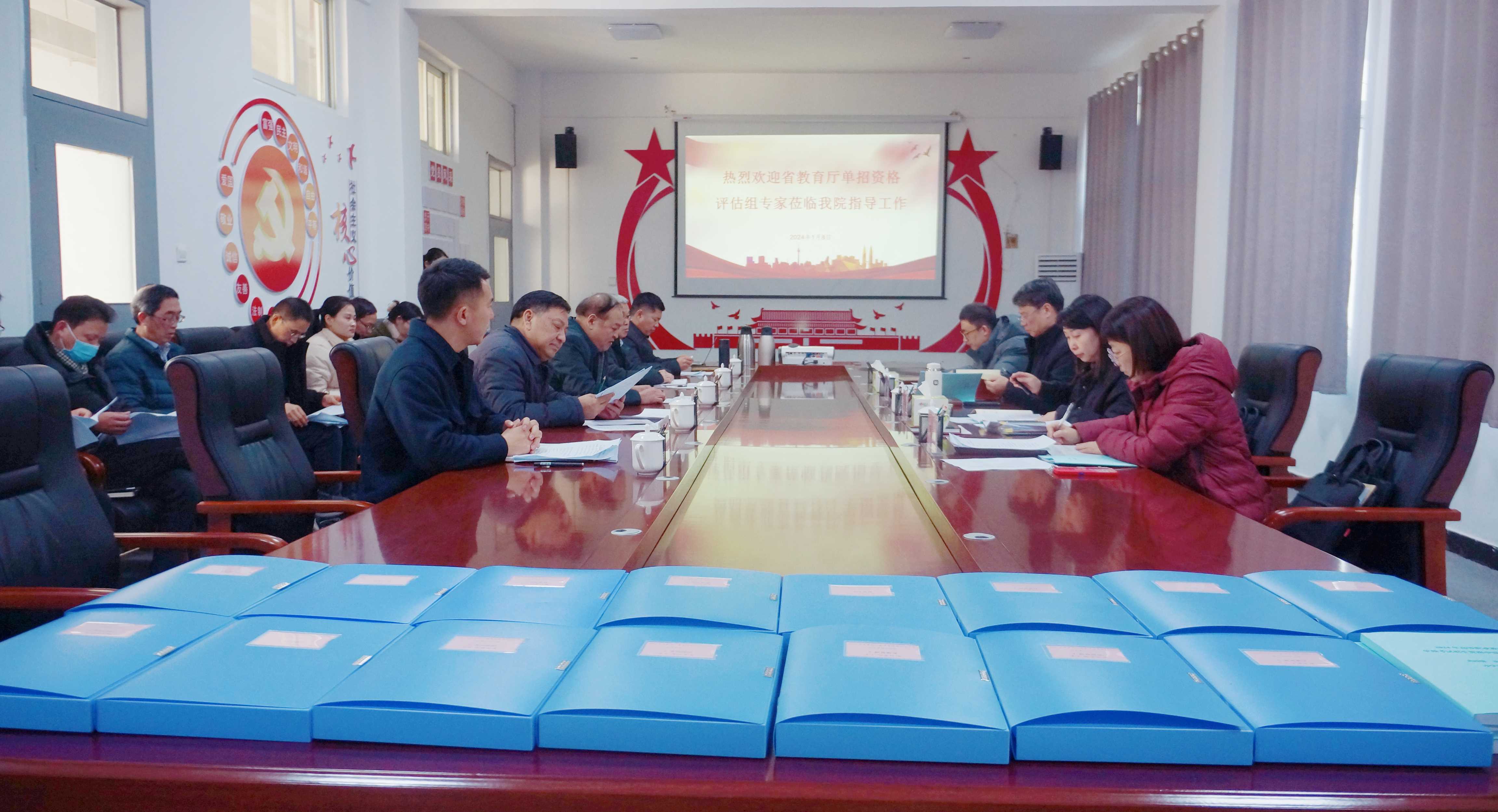 1月8日,河南省教育厅单独考试招生资格评估第四专家组莅临我院开展2024年单独考试招生资格评估检查工作。评估专家组组长为郑州铁路职业技术学院倪居副校长,专家成员为省教育厅财务处杨青主任、河南交通职业技术学院招生就业处郭强处长、河南应用技术职业学院教务处杨敏副处长。汇报会在C113会议室召开,我院党委书记陈立新,院长林晓民,副理事长贾长青,副院长尹志超、庄迪迪出席,学院相关处室负责同志参加会议。