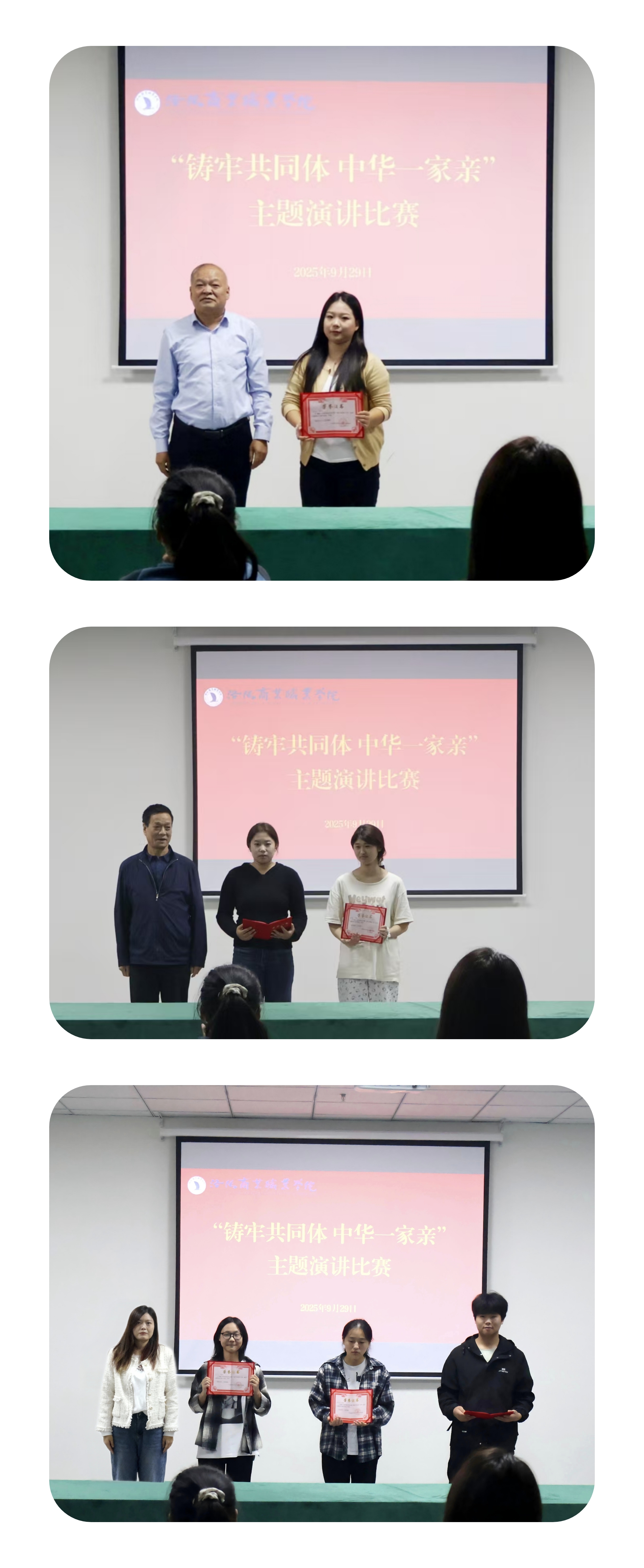 本次活动共分为初赛和决赛两个阶段,经各专业初赛层层选拔,最终共15名同学脱颖而出站上决赛舞台。比赛中,选手们紧扣“铸牢共同体 中华一家亲”的主题,以真挚的情感、生动的表达,诠释对中华民族共同体意识的理解,展现新时代学子同心筑梦的青春担当。