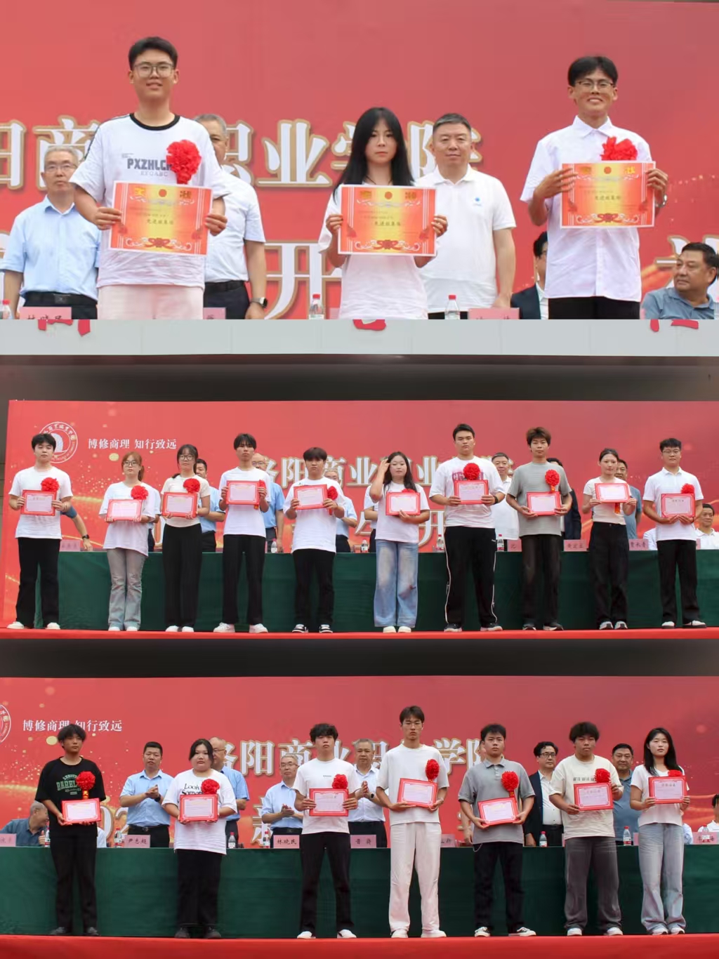 宋东亮宣读关于“三好学生”“优秀学生干部”“先进班集体”的表彰决定,对过去一学年表现突出的3个“先进班集体”、145 名“三好学生”、7名“优秀学生干部”予以表彰,激励全体同学以先进为榜样,在学习与实践中锤炼本领、奋勇争先,营造积极向上的校园氛围。