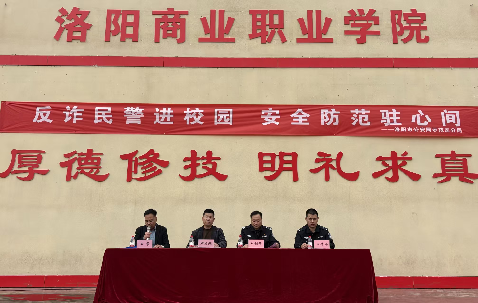 为筑牢校园反诈“安全网”,提升学生识骗防骗能力,10月15日,我校邀请洛阳市公安局示范区分局反诈专班入校,举办“反诈民警进校园”专题教育活动。副校长尹志超出席活动并讲话,全体师生共同参与,为青春成长筑起“防护盾”。