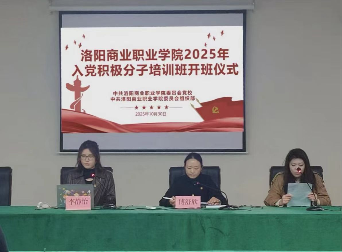 为深入贯彻落实全面从严治党要求,严格党员发展程序,切实提高入党积极分子培养质量,中共洛阳商业职业学院委员会党校于2025年10月30日下午在综合楼225会议室举行2025年第二期入党积极分子培训班开班仪式。