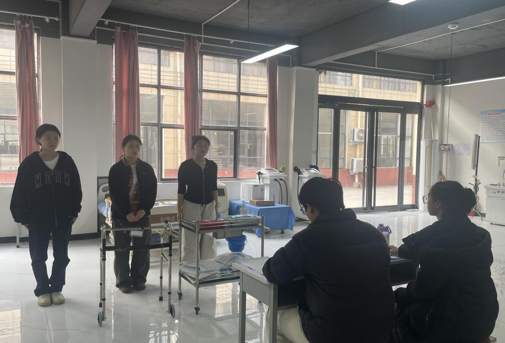赛事获学生积极响应,经前期理论与基础实操筛选,27名学生晋级并分为8组。决赛中,选手需在10分钟内依据真实案例,完成标准病人评估、照护操作与健康指导全流程,赛场氛围紧张有序。评审团队由资深教师任世昌、王昭迪及各级专家组成,参照国赛标准,从操作规范、流程完整、人文关怀等维度评审并给出改进建议。