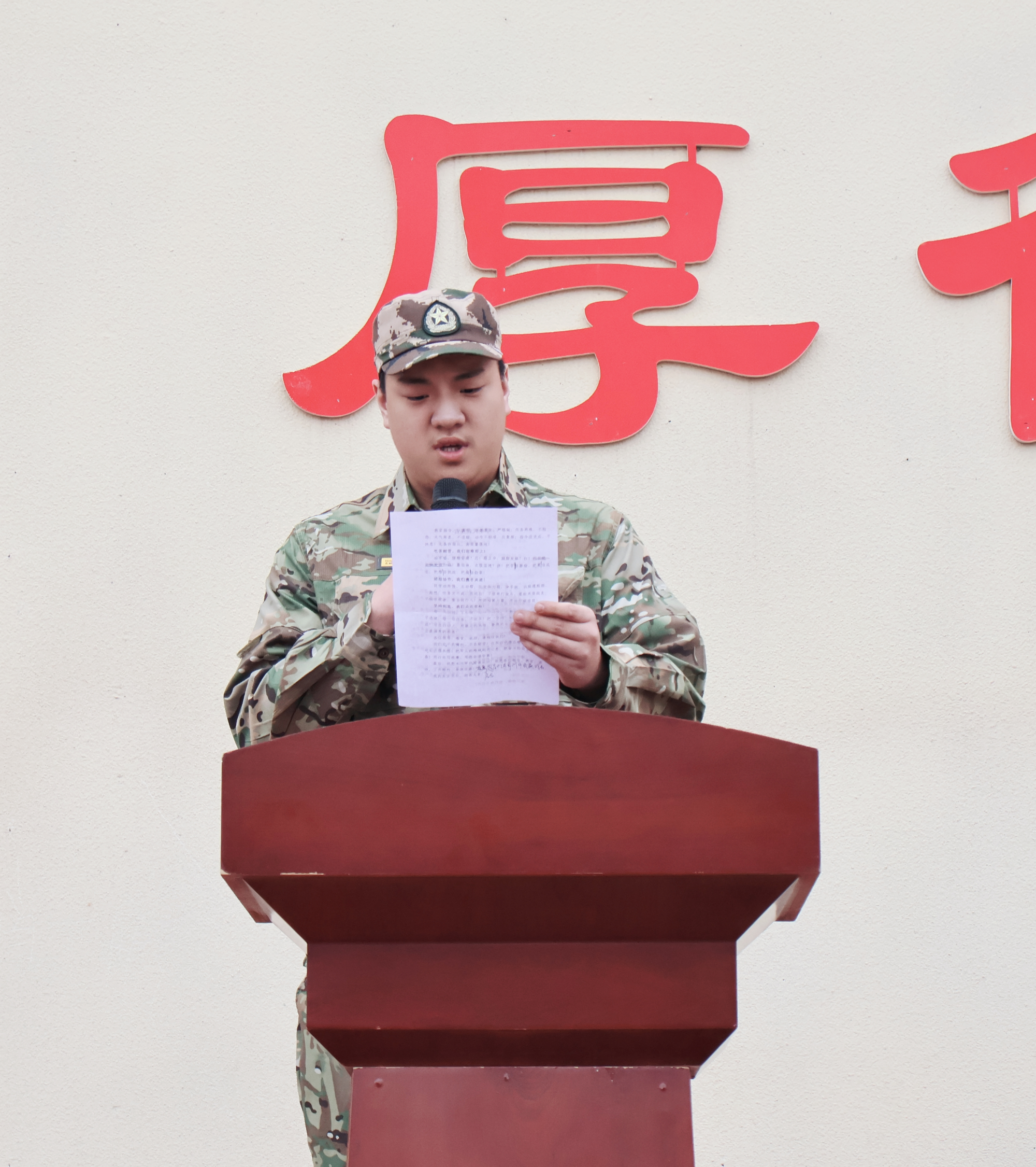 2025级新生代表翟浩翔发言,他表示定不负嘱托,不负期望,在军训中练出硬作风,在磨砺中长出强本领,把军人的精神刻进心里,把奋斗的姿态融入青春,用汗水写故事,用热血谱华章!