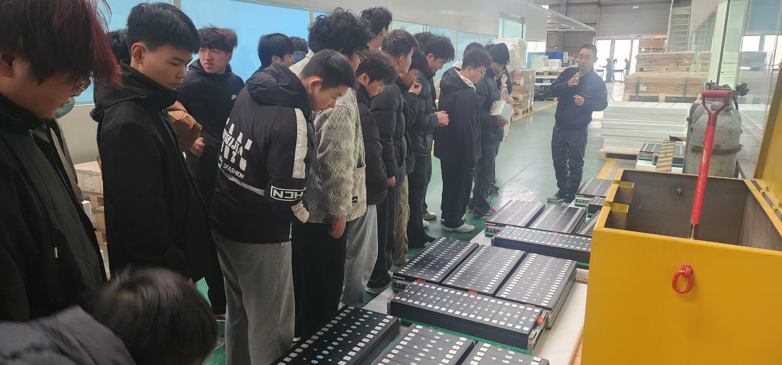 在洛阳电牛新动力科技有限公司,学生参观了电池模组生产线、电池梯次利用实验室及智能充电设备研发中心。作为河南省新能源技术推广服务领域的标杆企业,该公司以动力电池研发为核心,业务覆盖交通、储能、通信等领域,拥有22项专利技术及6项软件著作权。