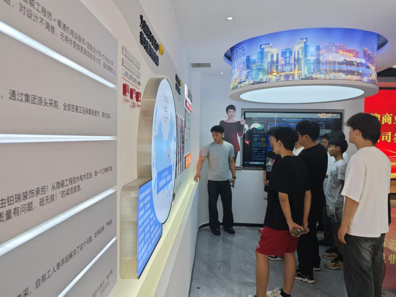 活动当日,铂瑞装饰工程有限公司展现了高度的重视与专业的组织能力。在工作人员的细致引导与专业讲解下,来访学生依次参观了公司倾力打造的整体家装体验中心、汇聚前沿装饰材料的展区以及涵盖多种风格的实景样板间。