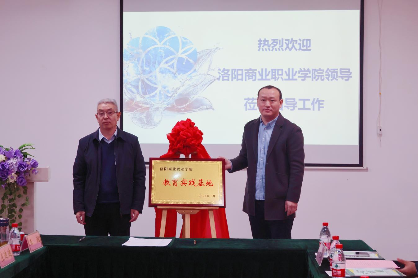 林晓民为安然颁发了“行业导师”证书,两人分别代表双方签署了战略合作协议,并共同为“洛阳商业职业学院教育实践基地”揭牌。与会人员还进行了深入的探讨交流。