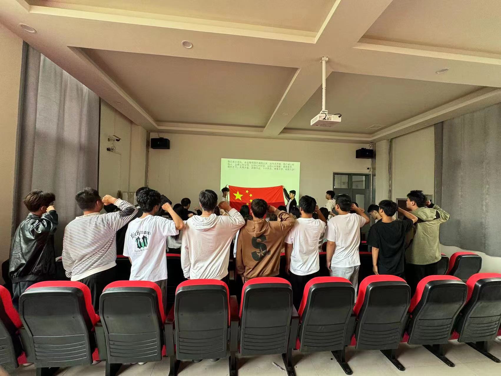 电影结束后,来到“青春向祖国宣誓”环节,同学们字字铿锵,豪情万丈,用满怀激情的誓言表达对伟大祖国的敬仰和热爱。作为新时代的新青年,让我们用最昂扬的姿态奋发向上,用最炽热的爱国之心祝福祖国!(撰稿/武琳琳 审核/晋枫杰)