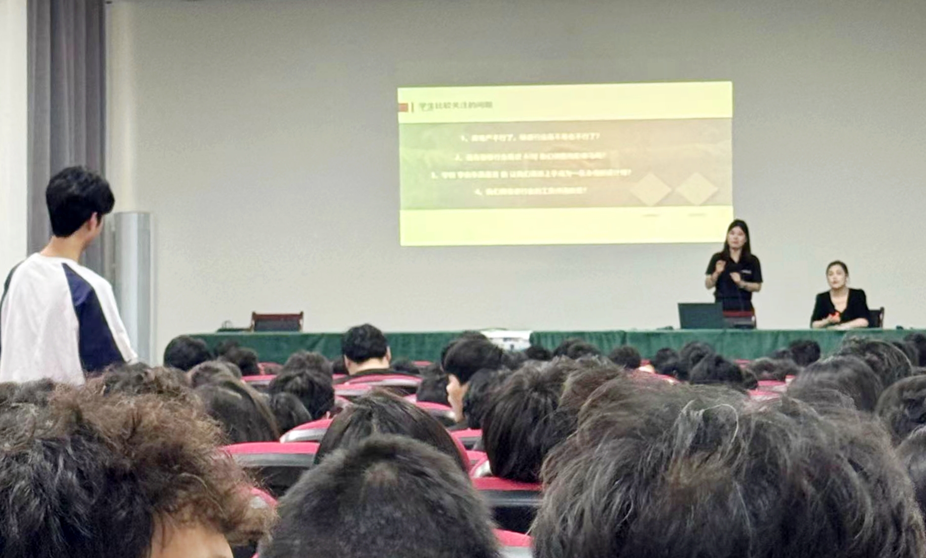 在互动环节,同学们积极提问,就自己关心的薪资待遇、工作环境、培训晋升等问题与招聘负责人进行了深入交流。负责人一一耐心解答,现场气氛热烈。同学们纷纷表示,通过此次宣讲会,对深圳铂瑞装饰有了更全面的了解,也对未来的职业发展有了更清晰的方向。