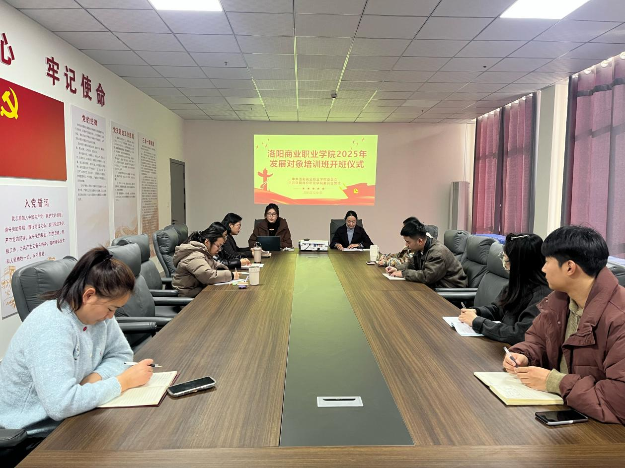 2025年12月4日下午,洛阳商业职业学院2025年发展对象培训班开班仪式在综合楼325会议室举行。仪式在庄严的《中华人民共和国国歌》声中开始。主持人代表校党委向全体学员表示热烈祝贺和欢迎,强调本次集中培训是党员发展工作的重要环节,是确保党员质量、锤炼党性的关键步骤。全体学员应深刻认识培训意义,珍惜学习机会,力求在思想理论水平和党性修养上取得扎实进步。