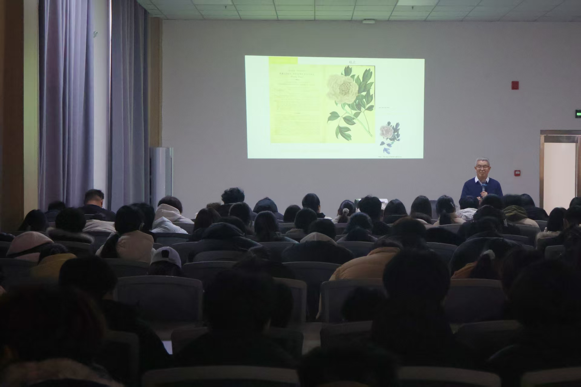 他从“文化的概念”切入,从广义与狭义的文化定义展开阐释,结合个人经历与感悟,引导学生以好奇心与求知欲主动走进文化,体悟其温度与精神力量。随后,他深入阐释了校内洛阳文化长廊中“不食周粟”“定鼎洛邑”“伊阙”“根在河洛”等板块的历史内涵,带领学生品读“古诗词中的洛阳”,通过众多吟咏洛阳、孟津、洛阳才子、伊川等的经典诗篇,感受城市深厚的文脉底蕴,体会“文化价值的享受”。最后以牡丹文化为专题进行深入剖析,多维度展现牡丹的文化与实用价值,并结合自身体会,引用“欲人勿疑,必先自信”的古训,引导同学们在感受文化的魅力中,坚定文化自信。