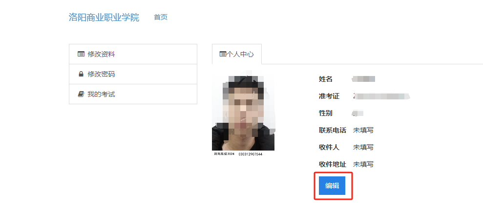 4.登陆成功,点击“编辑”,完成个人信息填写,并保存。