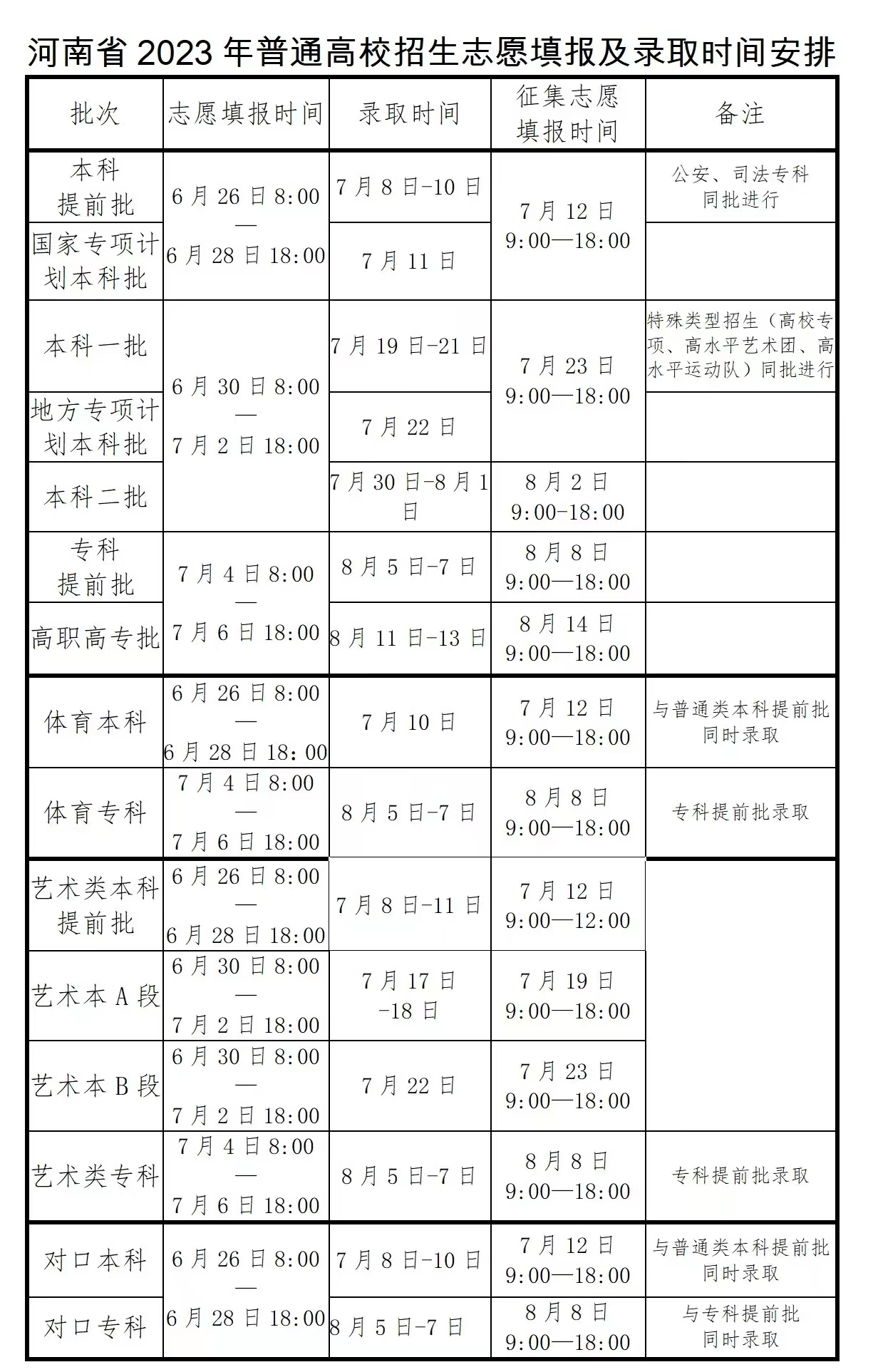 (1)6月26日8:00—28日18:00。填报:军队招飞、本科提前批(公安、司法专科随该批)、国家专项计划本科批、艺术本科提前批、对口招生(本、专科)志愿;