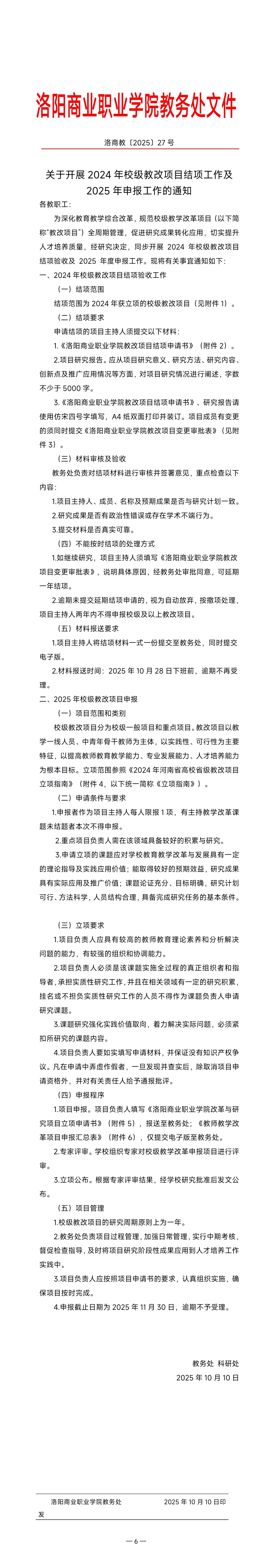 附件【附件6.洛阳商业职业学院教改项目结项汇总表】