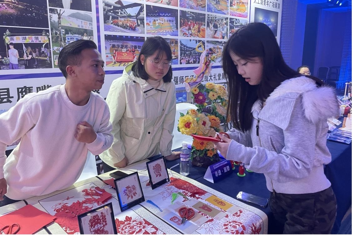 启动仪式后,文艺展演高潮迭起。青年乐队以摇滚乐点燃全场,街舞SOLO引爆欢呼声浪。传统武术表演中,双刀对练、太极推手令学生目不转睛,学生们纷纷举起手机记录神奇瞬间还有川剧变脸、汉服走秀、模特走秀、爵士舞表演等,融合传统与潮流,展现青年时尚风采。学生通过沉浸式体验唐三彩“点蓝”、绒花制作、河洛剪纸等非遗技艺,从“旁观者”转变为“传承者”,在指尖技艺中感知文化厚度,筑牢文化自信根基。